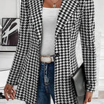 Sort-Hvid Ternet Blazer med Slank Pasform – Klassisk og Moderne Stil