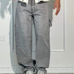Disse baggy jeans til kvinder kombinerer moderne streetwear med kunstnerisk kant. Designet med en løs, behagelig pasform og dekoreret med diskrete malerpletter, giver jeansene et cool, casual look med masser af personlighed. Det bløde denimstof gør dem komfortable at have på hele dagen, mens den afslappede silhuet giver et trendy og ubesværet udtryk.