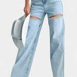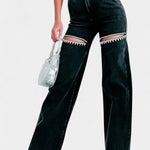 Højtaljede Jeans med Rå Slid – Wide Leg Denim med Kant