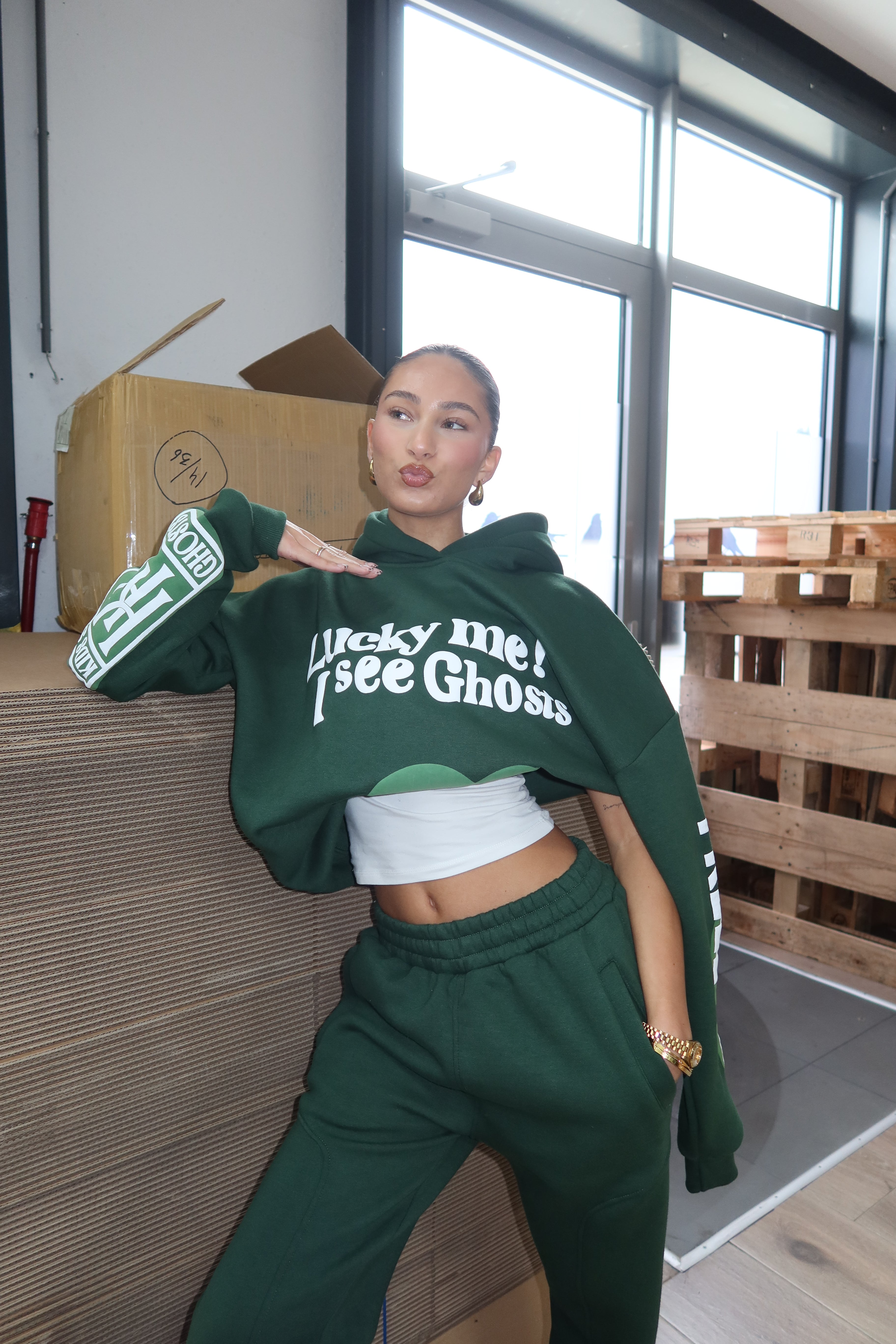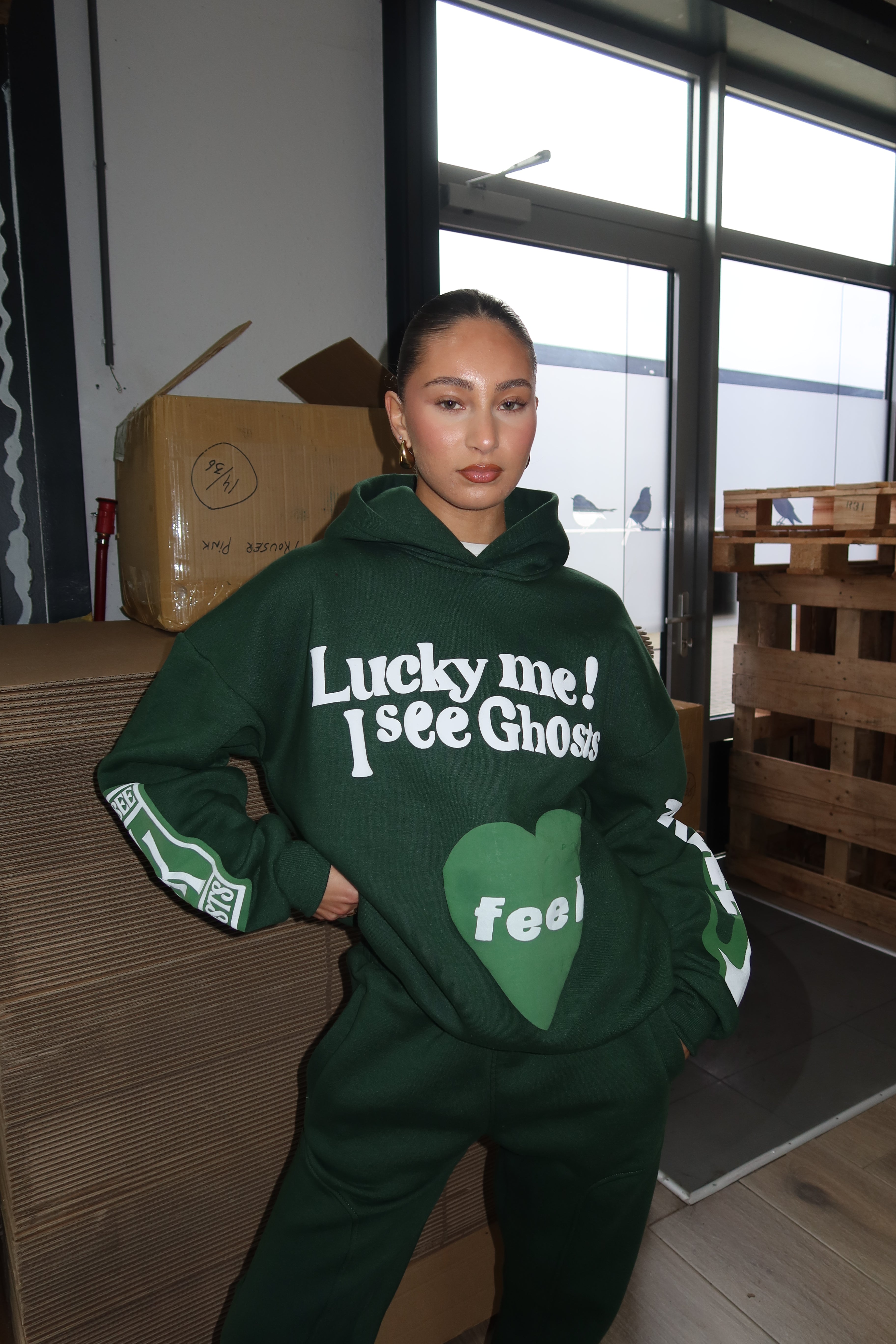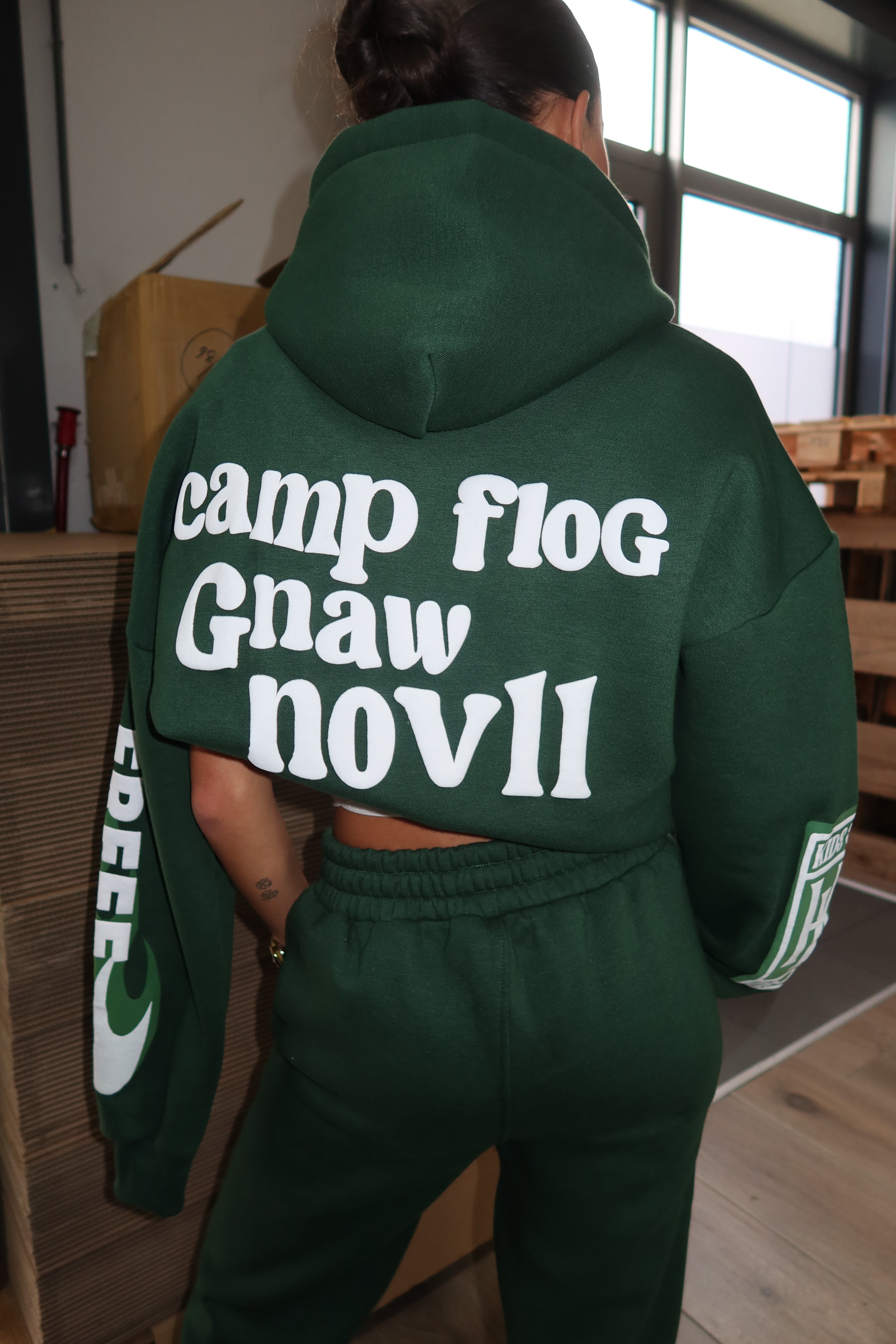 Den rummelige pasform giver god bevægelsesfrihed og gør hoodien perfekt til lag-på-lag styling. Hætten bidrager til det afslappede udtryk og giver ekstra komfort på kølige dage. Hoodien kan styles med matchende bukser for et gennemført sæt eller kombineres med jeans eller leggings for et mere casual look. Et stærkt statement-piece, der forener komfort, varme og moderne streetwear-stil og hurtigt bliver en favorit i garderoben.