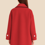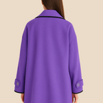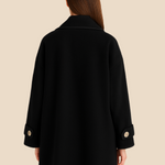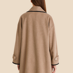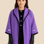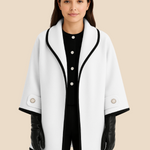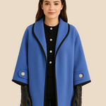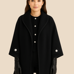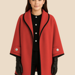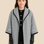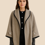 Elegant dameponcho i uldlook med knapdetaljer og løs pasform