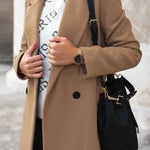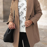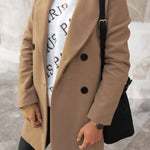 Denne elegante dobbeltknappede damefrakke kombinerer tidløs stil med moderne minimalisme. Den er designet med en flatterende, figursyet pasform, som fremhæver kroppen på en naturlig og sofistikeret måde. Frakken er fremstillet i et blødt og behageligt materiale, der gør den ideel til både efterår og forår.