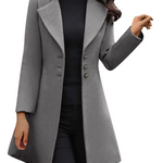 Elegant figursyet damefrakke med klassisk revers og knaplukning