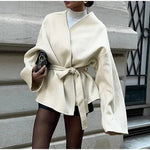 Kort Uldjakke med Bælte til Kvinder – Elegant og Minimalistisk Efterårsjakke