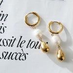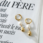 • Gyldne hoops med dråbeformet perlevedhæng