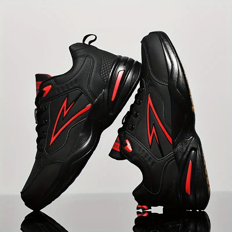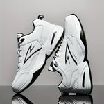 Tag dit outfit til næste niveau med disse chunky unisex sneakers, der kombinerer retro sportstil med moderne urban design. Den hvide base med sorte kontrastdetaljer og det markante lyn-logo giver skoen et iøjnefaldende udtryk, der skiller sig ud på gaden. Den robuste og stødabsorberende sål sikrer komfort, mens den strukturerede ydersål giver maksimal greb og stabilitet. Ideel til både mænd og kvinder, der ønsker stil, holdbarhed og et råt streetwear-look i én pakke.