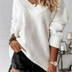 Blød dame striktrøje med V-hals og afslappet pasform