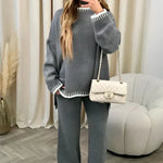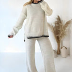 Dette dame strik loungewear sæt er skabt til dig, der ønsker både komfort og stil i din hverdag. Sættet består af en blød, langærmet sweater med afslappet pasform samt matchende bukser med lige ben, hvilket giver et harmonisk og moderne look. Det tidløse design gør sættet velegnet til både hjemmets afslapning og casual udflugter, hvor du stadig vil føle dig velklædt og smart. Den elastiske komfort og lette struktur i stoffet giver en behagelig følelse mod huden, mens det minimalistiske udtryk passer til enhver garderobe. Uanset om du bruger sættet som hyggetøj, rejsesæt eller som en casual modefavorit, får du en praktisk kombination af funktion og elegance.