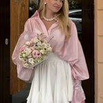 De lange, let voluminøse ærmer giver blusen et luksuriøst og afslappet udtryk, mens den bløde struktur gør den behagelig at have på hele dagen. Blusen kan nemt styles med nederdel, jeans eller bukser og fungerer både som et statement-piece alene eller i kombination med blazer eller jakke. Uanset om du vælger den i klassisk sort, lys creme eller en sart pastelfarve, får du en alsidig bluse, der passer perfekt ind i en moderne garderobe og kan bruges sæson efter sæson.