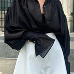 Elegant bluse med bindedetalje og let, luftig pasform