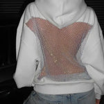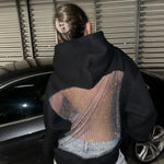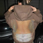 Denne hættetrøje er skabt til dig, der ønsker et markant og moderne look med et feminint twist. Forfra har trøjen et klassisk, afslappet streetwear-udtryk med hætte og løs pasform, mens ryggen overrasker med et åbent design og fine blondedetaljer, der giver et unikt og iøjnefaldende udtryk. Kontrasten mellem den sporty front og den elegante ryg skaber en perfekt balance mellem rå stil og feminin elegance.