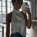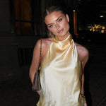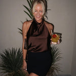 Denne halterneck top er et stilfuldt og sofistikeret valg til dig, der ønsker et feminint og moderne udtryk med minimal indsats. Toppen er designet med en elegant halterneck-udskæring, der smukt fremhæver skuldre og hals, mens det bløde satinlook giver et eksklusivt og flydende fald. Materialet føles let og behageligt mod huden og gør toppen ideel til både varme dage og lag-på-lag styling til aftenbrug.