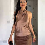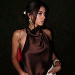 Halterneck top i satinlook med elegant fald