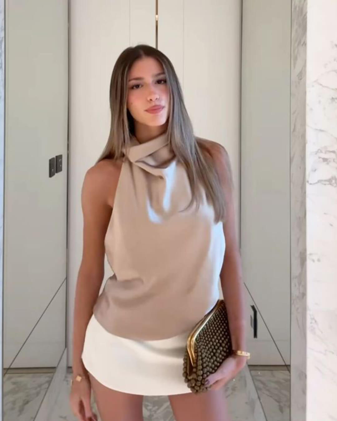 • Elegant halterneck-design