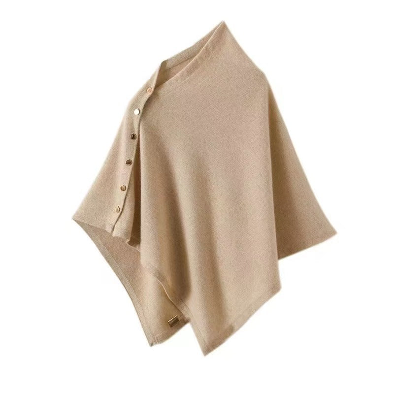 Poncho-cardigan med knapper og blød uldstruktur til kvinder