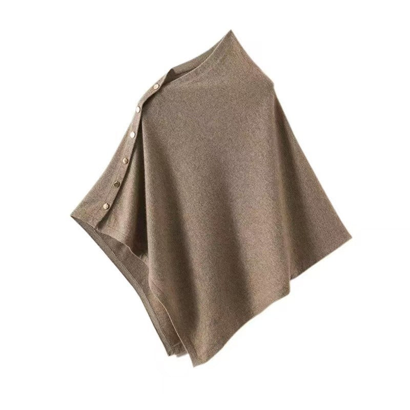 Denne elegante poncho-cardigan kombinerer stil og komfort i ét klassisk design. Med sit luksuriøse, bløde materiale og åbne, flagrende snit er den perfekt til kvinder, der ønsker varme uden at gå på kompromis med elegance. Knaplukningen i siden gør det muligt at bære den både åbent og lukket, alt efter stil og anledning.