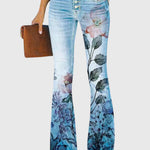 Højtaljede Jeans med Blomsterprint – Farverig Denim med Statement Look